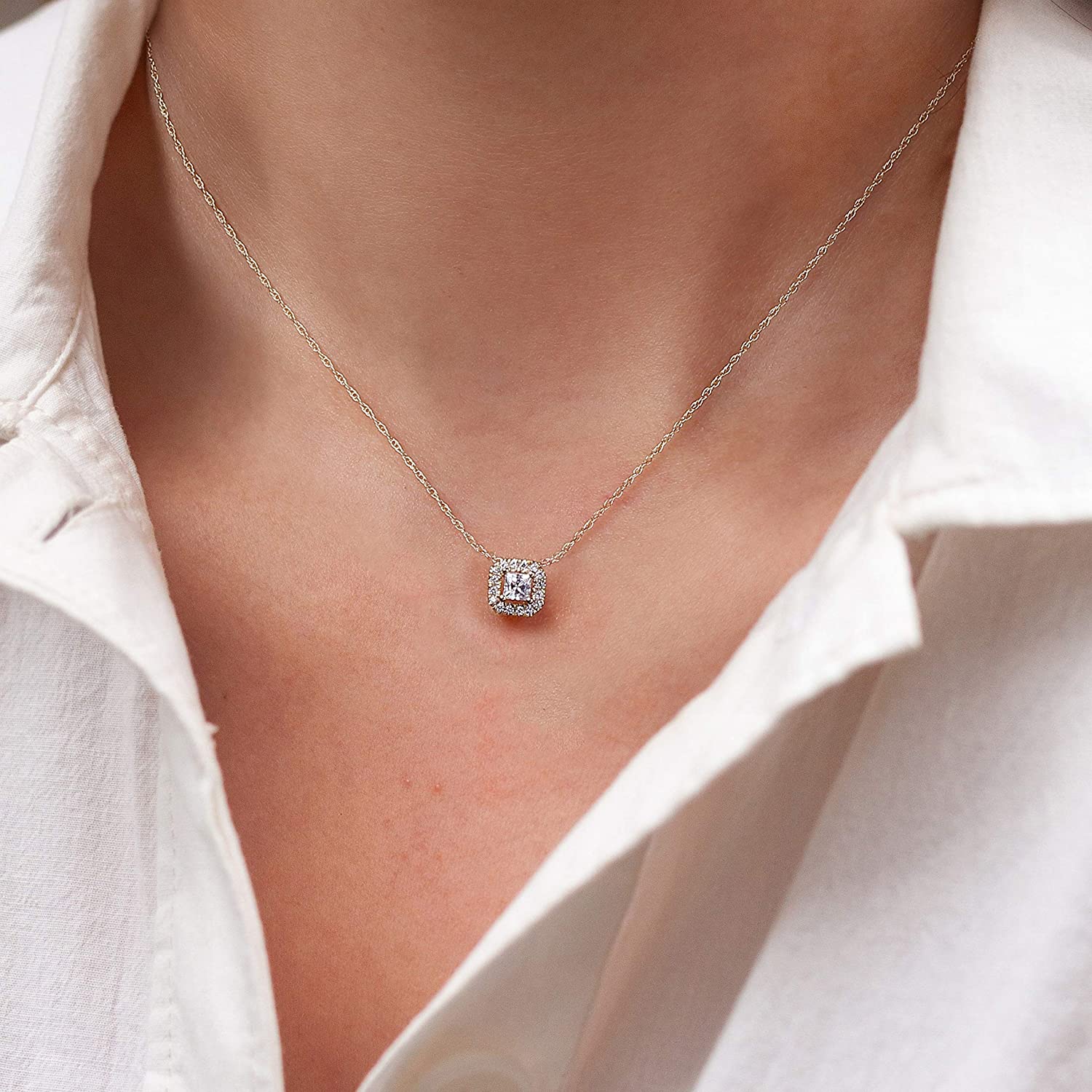 LA BELLA 10k Gold 1/4 CT.TDW. Diamond Halo Pendant Necklace for Women Girls Diamond Jewelry Gifts for Her by Labella