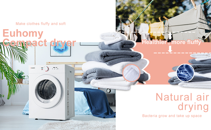 • 【High performance】This is powerful yet compact clothes dryer machine, euhomy portable dryer has a large capacity of 10.5 pounds(wet clothes). This dryer with 1050W power, It can reach a maximum temperature of 140°F, To ensure that your clothes dry quickly. Note: Use after spin-drying, the drying effect is better./The dryer can serve two people/If you have more space needs, you can buy other products of this brand.