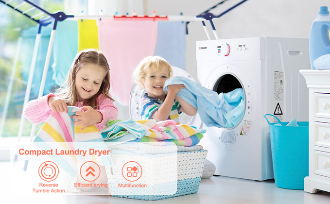 Euhomy Compact Laundry Dryer 1.8 cu.ft, Stainless Steel Clothes Dryers With Exhaust Pipe, Four-Function Portable Dryer For Apartments, Home, Dorm, White