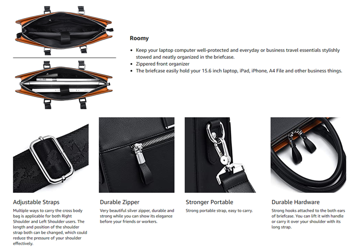 • Stylish -- Hand made by professional artisans. Can be used as lawyers briefcase, laptop bag, or hand carry functional briefcase. Classic design is perfect for business men and women.