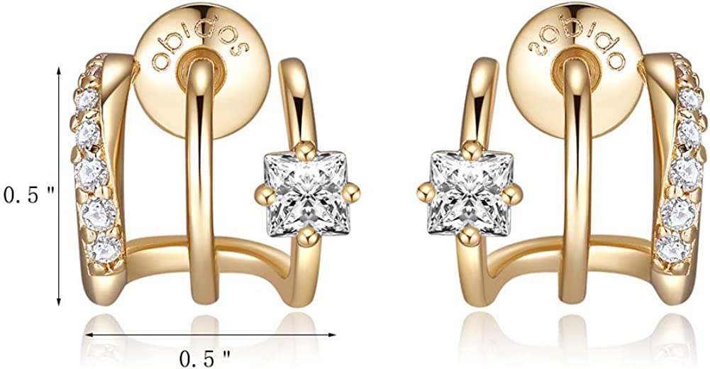 Obidos 14K Gold Plated Triple Huggie Illusion Stud Earrings | Double Huggie Hoop Earrings for One Hole | Gold Hoop Earrings for Women