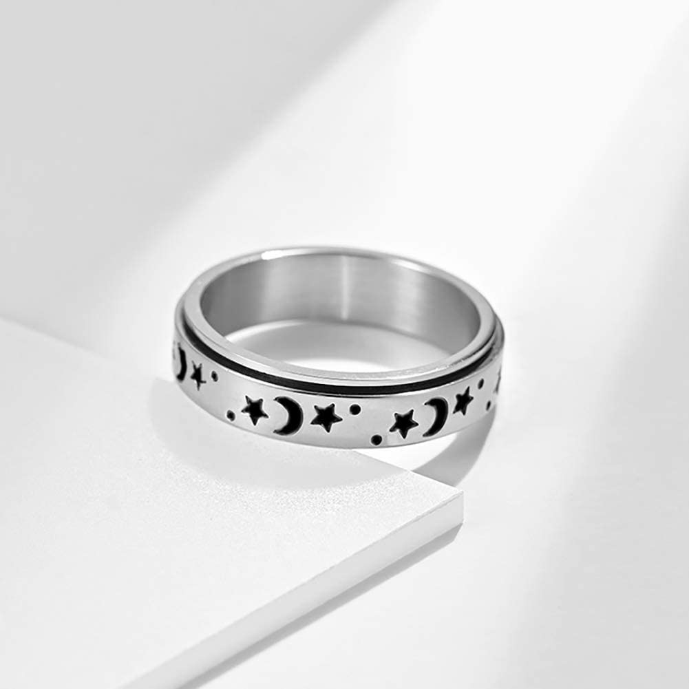 Perfect gift: This moon star spinner ring is suitable for giving to friends, family, boys, girls, boyfriends and girlfriends. If you have an anxious friend around you, this titanium stainless steel anxiety rings is the perfect gift to help them release their stress.