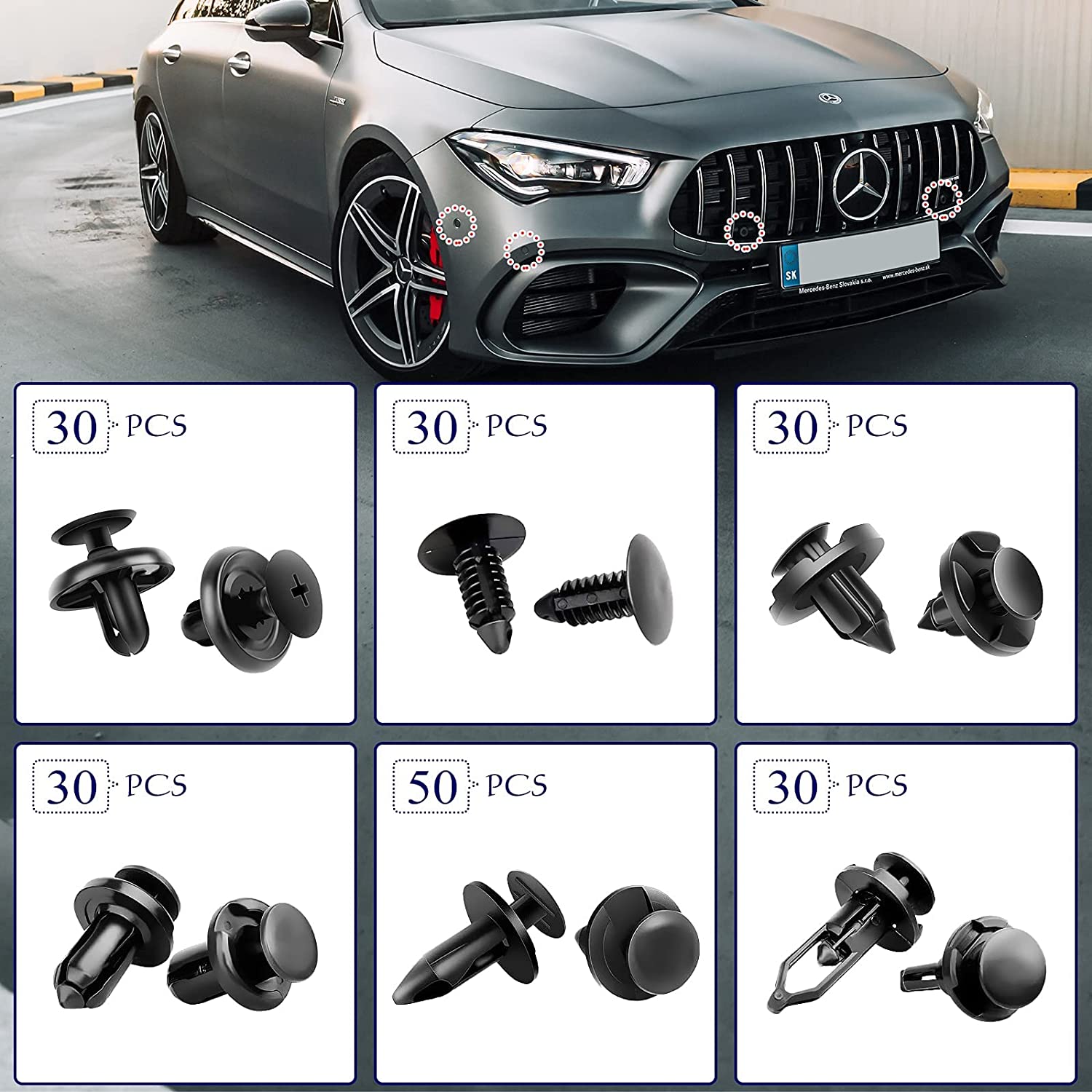 Widely Application : Great Assortment Push Retainer Kit with 6 popular size, push clips are widely used for trim panel clips, door trim clips, door panel clips, bumper clips, Fender clips, engine cover and splash shield retainers replacement for Ford, GM, Chrysler, Toyota, Honda.