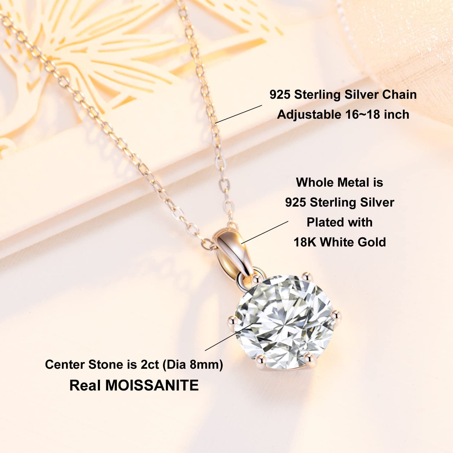 SecreTalk 2CT Moissanite Pendant Necklace 18K White Gold Plated Silver D Color Ideal Cut Diamond Necklace for Women with Certificate of Authenticity