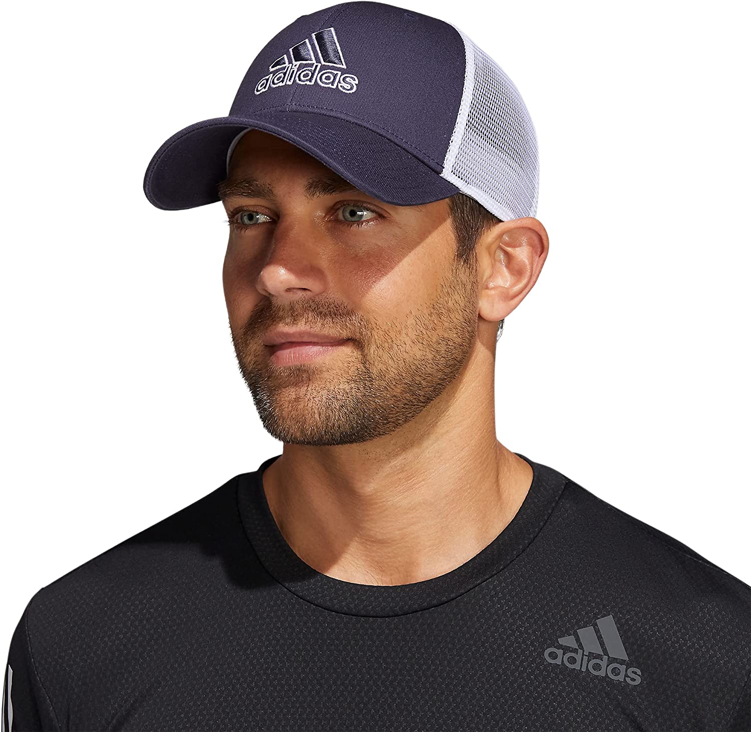 Keep the sun out of your eyes and your focus on your workout in this men's hat. Mesh panels provide air flow to move heat and moisture away from you. An embroidered, color-filled adidas Badge of Sport stands out in front.
