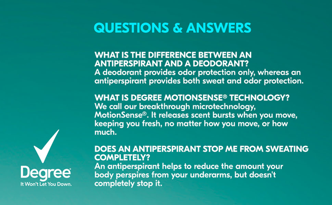Degree Clinical Protection Shower Clean Antiperspirant Deodorant delivers prescription-strength wetness protection, so you can face the day with confidence. This antiperspirant for women features 72-hour sweat and odor protection and the bright floral scent of rose and jasmine, blended with delicate fruit for an invigorating, clean feeling. Only Degree has MotionSense technology that moves in sync with your body. This clinical strength antiperspirant deodorant releases a burst of subtle fragrance every time you move, for nonstop protection. Degree Clinical Protection Shower Clean Antiperspirant Deodorant keeps you feeling fresher, drier, and more confident. This powerful antiperspirant deodorant responds when you need it most so that you don't have to worry about slowing down. Simply swipe and start moving. This antiperspirant deodorant for women with a tantalizing scent gives you the confidence to keep moving all day long. Degree Clinical Protection Shower Clean Antiperspirant Deodorant keeps you feeling cool, fresh and protected from sweat and odor. Degree gives you the confidence to keep moving, however you move. At Degree, we want to inspire the confidence in everyone to move more and go further. We’re here to support your journey through an antiperspirant that moves with you and helps you go beyond your limits. As well as increasing our use of reusable materials, we’re making it easier for you to recycle our antiperspirant and dry spray packaging. Degree. It won’t let you down.