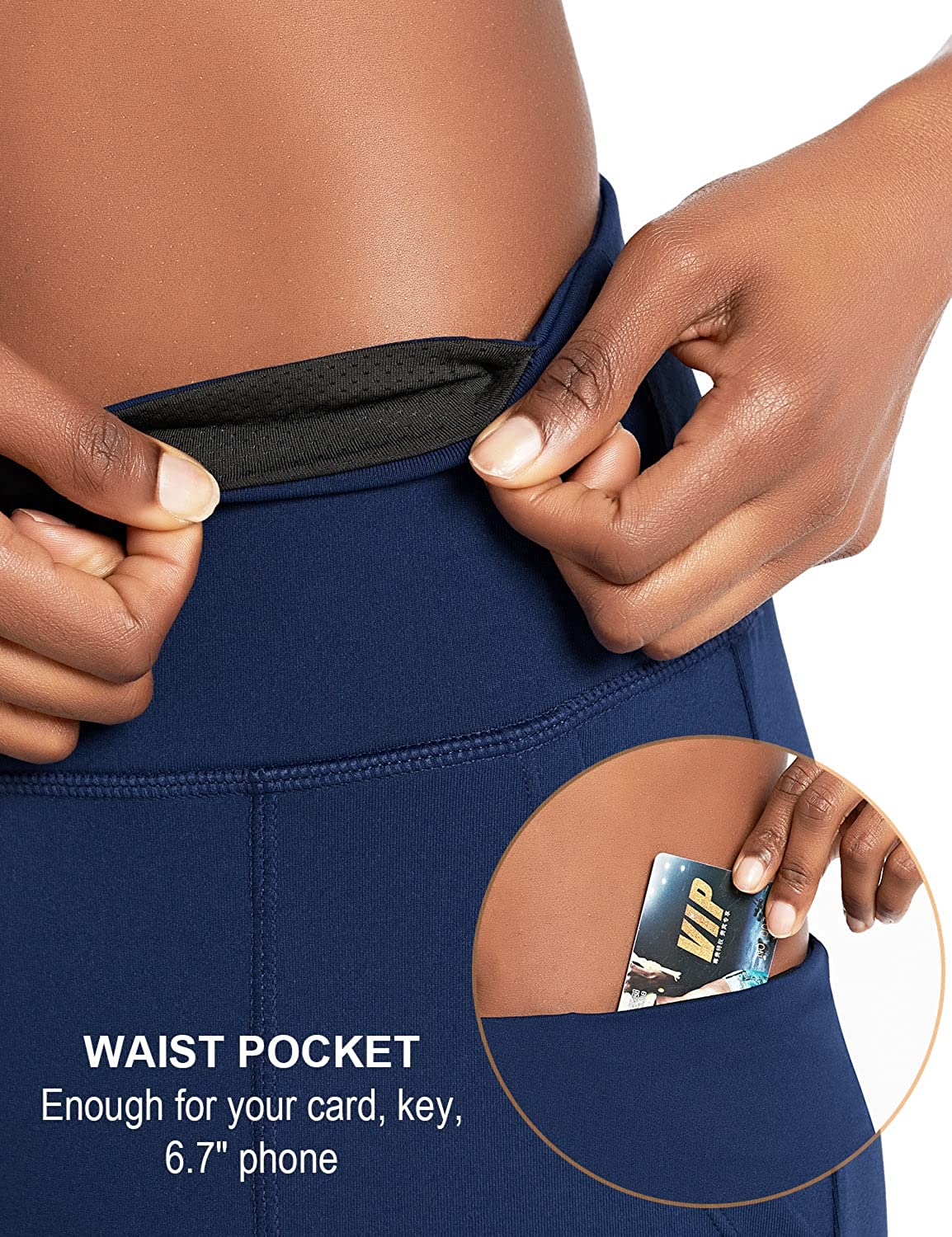 [3 Pockets] - 2 big side pockets and 1 hidden waistband pocket, which keep your personal belongings like cards, keys, 6.7" phone and etc.
