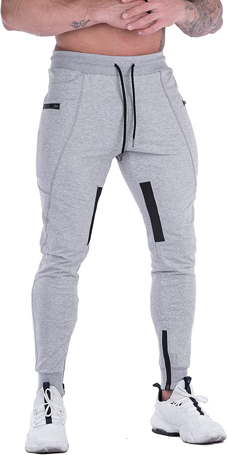 FIRSTGYM Mens Joggers Sweatpants Slim Fit Workout Training Thigh Mesh Gym Jogger Pants with Zipper Pockets