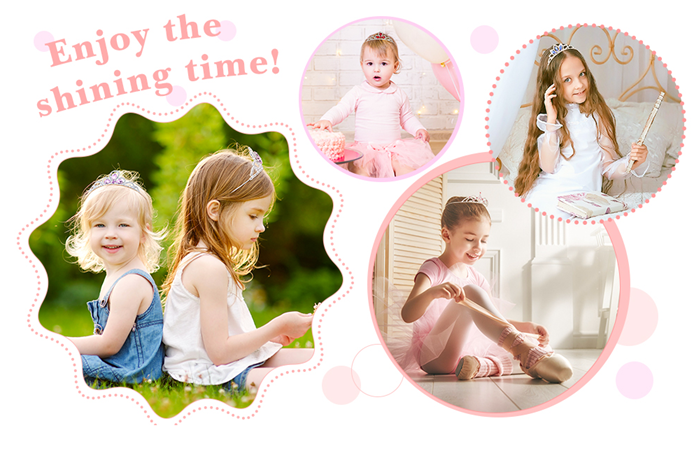 • Durable material: the princess tiaras are made of alloy, acrylic gems, rhinestones, which are strong and will not break easily, the rhinestones and acrylic gems will not fall easily and will glitter under the light, you can use them for a long time