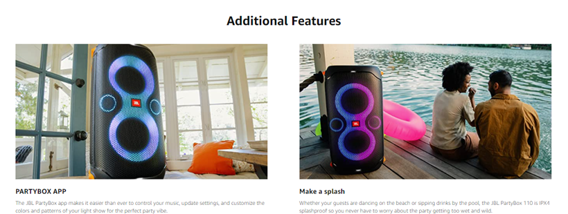- IPX4 SPLASHPROOF: Whether your guests are dancing on the beach or sipping drinks by the pool, the JBL PartyBox 110 is IPX4 splashproof so you never have to worry about the party getting too wet and wild.