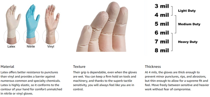 • MEDIUM-DUTY: Our 4 mil latex glove provides medium barrier protection from many chemicals and cleaning solutions and is suitable for non-sterile medical procedures, lab work, housekeeping, and more!