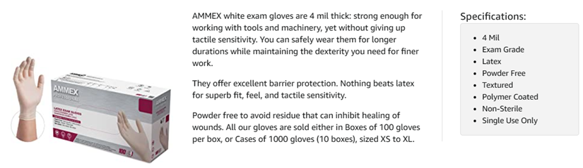 • QUALITY YOU CAN COUNT ON: A global leader in products that enhance health, hygiene, and safety; Ammex gloves are favored by doctors, home healthcare providers, first responders, and janitors alike.