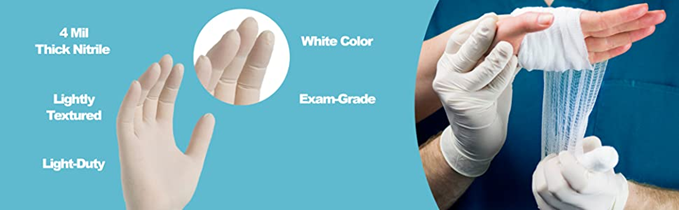 GLOVEPLUS AMMEX White Latex Disposable Exam-Grade Gloves, 4 Mil, Powder-Free, Food-Safe, Lightly-Textured, Non-Sterile