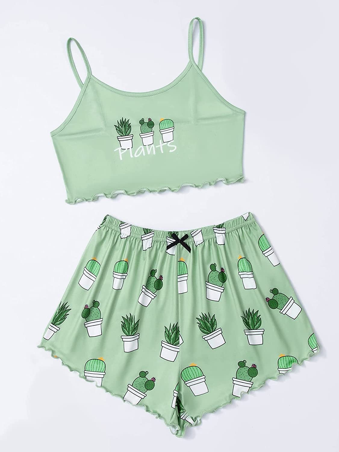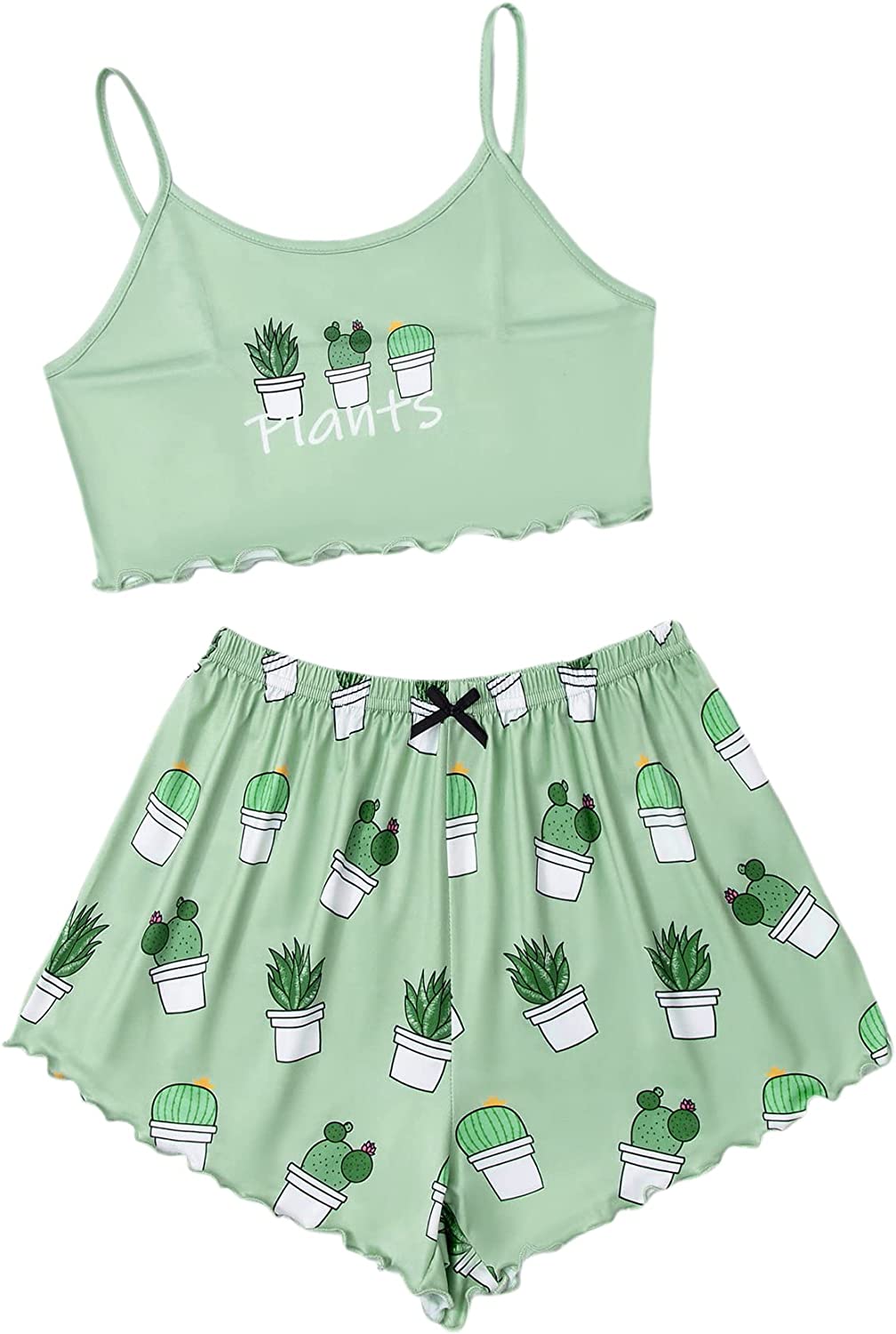 SheIn Women's Cute Cartoon Print Cami Top and Shorts Pajama Set