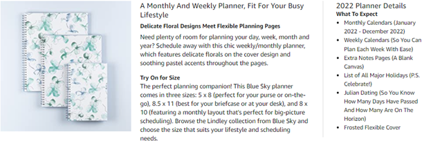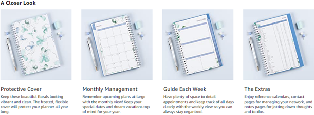 • Printed on high quality white paper for clean writing space, with premium quality covers in soothing colors and durable, coated tabs that withstand constant use throughout the year