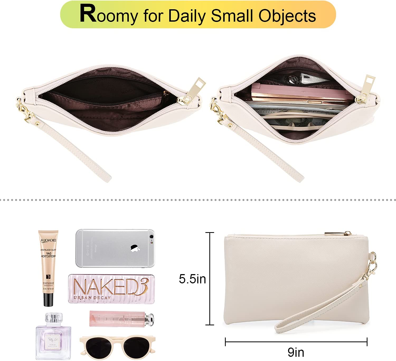 【Additional Clutch Bag】One more gift is a 9" L x 5.5" H detachable clutch purse. The clutch purse is made of soft PU leather, has smooth zippper on top closure, polyester lining inside. It can be used to organize and store small items such as change, jewelry, earphones, passports, keys and phones.
