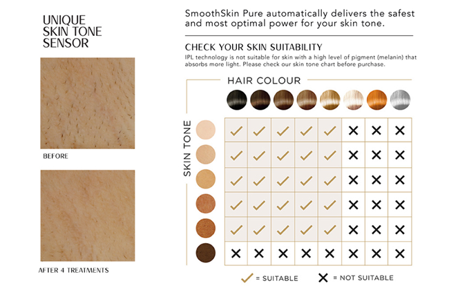 • VISIBLE HAIR REDUCTION IN JUST 4 WEEKS - SmoothSkin Pure delivers up to 6J/cm2 of energy per flash giving you permanent hair reduction that can be seen in as little as 4 weeks.