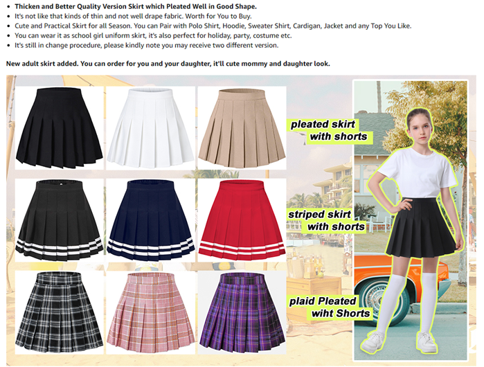 BINPAW Girls Women Pleated Skirt School Uniform Mini Tennis Skirts