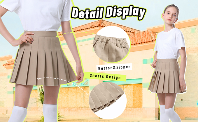 SANGTREE Girls Pleated Skirt Skort, Pleated Shorts, 2 Years - 14 Years