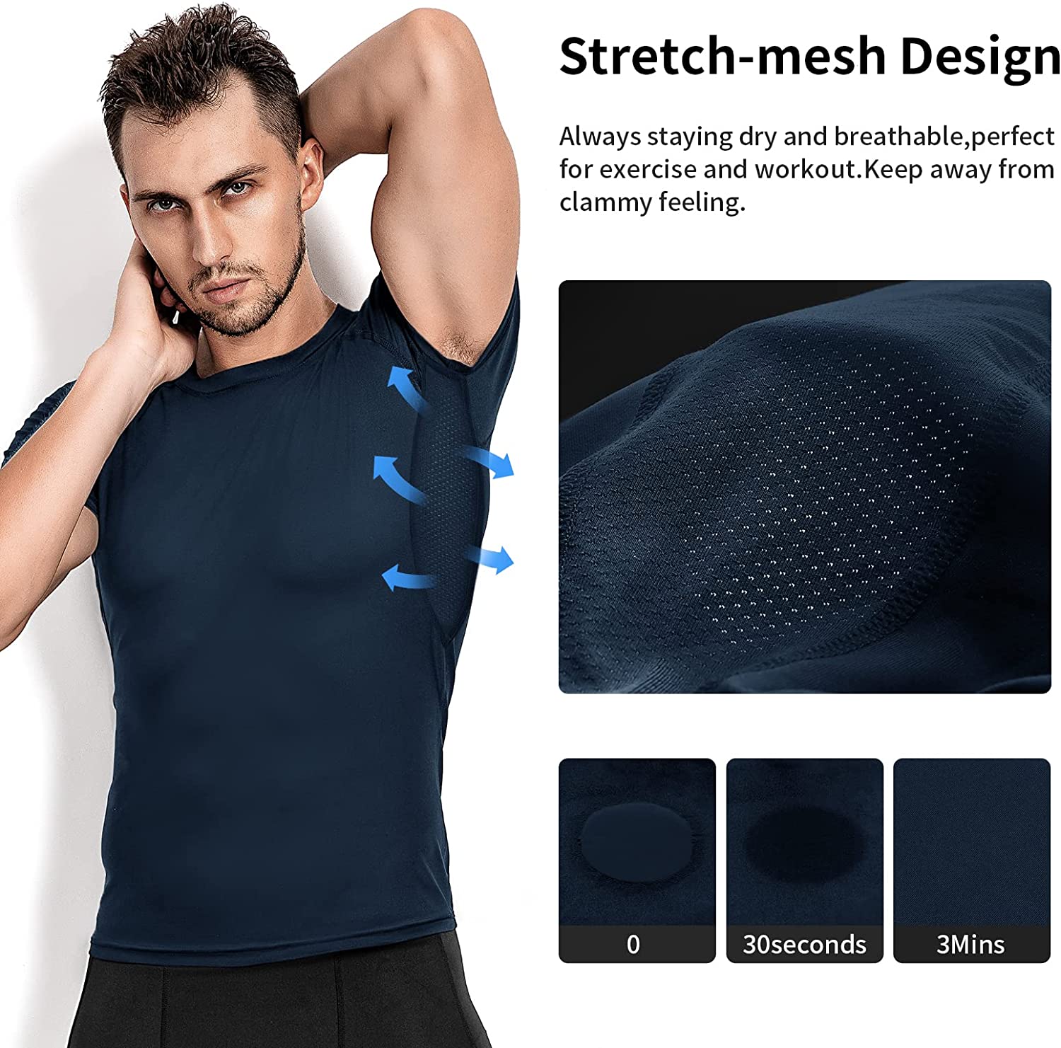 【Quick Drying Fabric】 This superior quality breathable compression shirts has excellent moisture wicking properties, keeping your body cool and dry quickly, staying away from dampness and coldness, and helping to regulate body temperature during exercise.