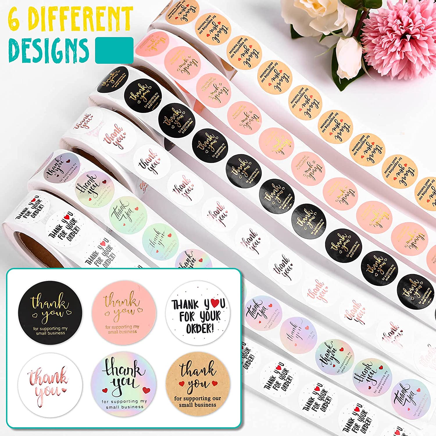 3000pcs Thank You Stickers, Evatage 6 Rolls 1 Inch Thank You Label Stickers for Small Business with 6 Design, Small Business Supplies for Packaging, Envelopes, Gift Wraps and Crafts