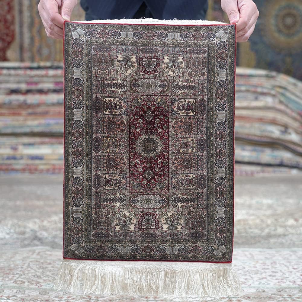 Yilong Carpet 1x1.5ft 1000 Lines High Density Handwoven Silk Persian Area Rug High-end Floral Vintage Carpets (Ivory&red)