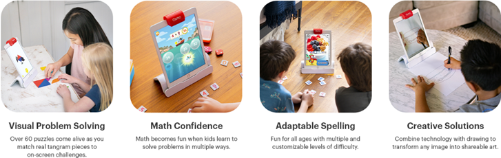 - SKILLS LEARNED: Visual problem-solving skills, puzzles, math, addition, counting, subtraction, multiplication, geography, marine biology, freehand drawing, gain listening skills, reading, learn physics & improve spelling & vocabulary. Osmo sees and reacts to every real-life move. Geared towards children & love of learning.