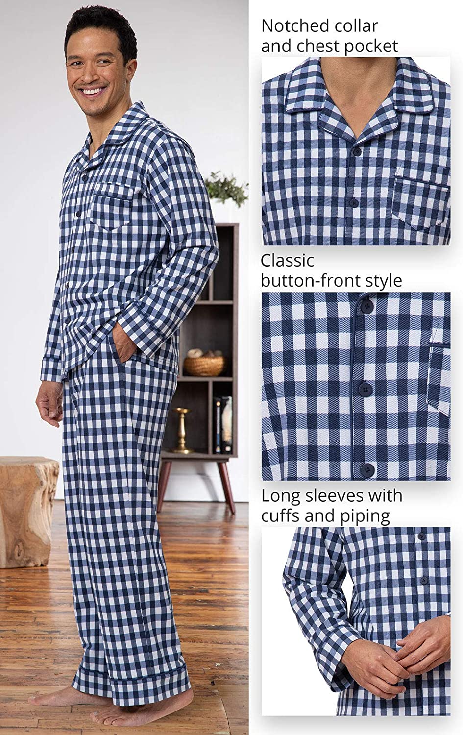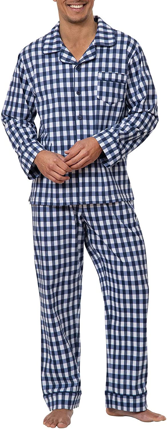 • Breathable Cotton - Men's pajamas are comfortable all year long thanks to breathable cotton; Stay comfy and warm without overheating in lightweight cotton fabric that wears and washes well; available in long sleeve or short sleeve styles.