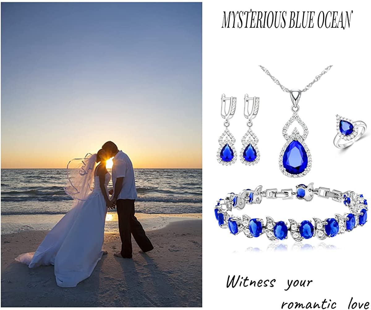 ❤High Quality Material:❤ This Women's Jewellery Set is made of White Gold Plated ,Main stone is Created Blue Sapphire ,Side stone is White cubic zirconia. High Polished. Nickel-free, Hypoallergenic and Shiny Forever. Will not change the color, health and environmental protection.