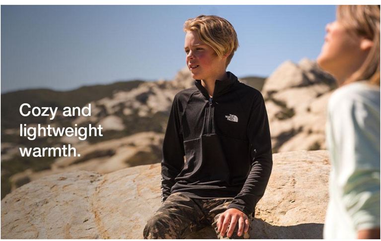 • THE NORTH FACE. An embroidered logo on the left chest and back-right shoulder show on the outer jacket and chest pocket on the reverse for a signature TNF look.