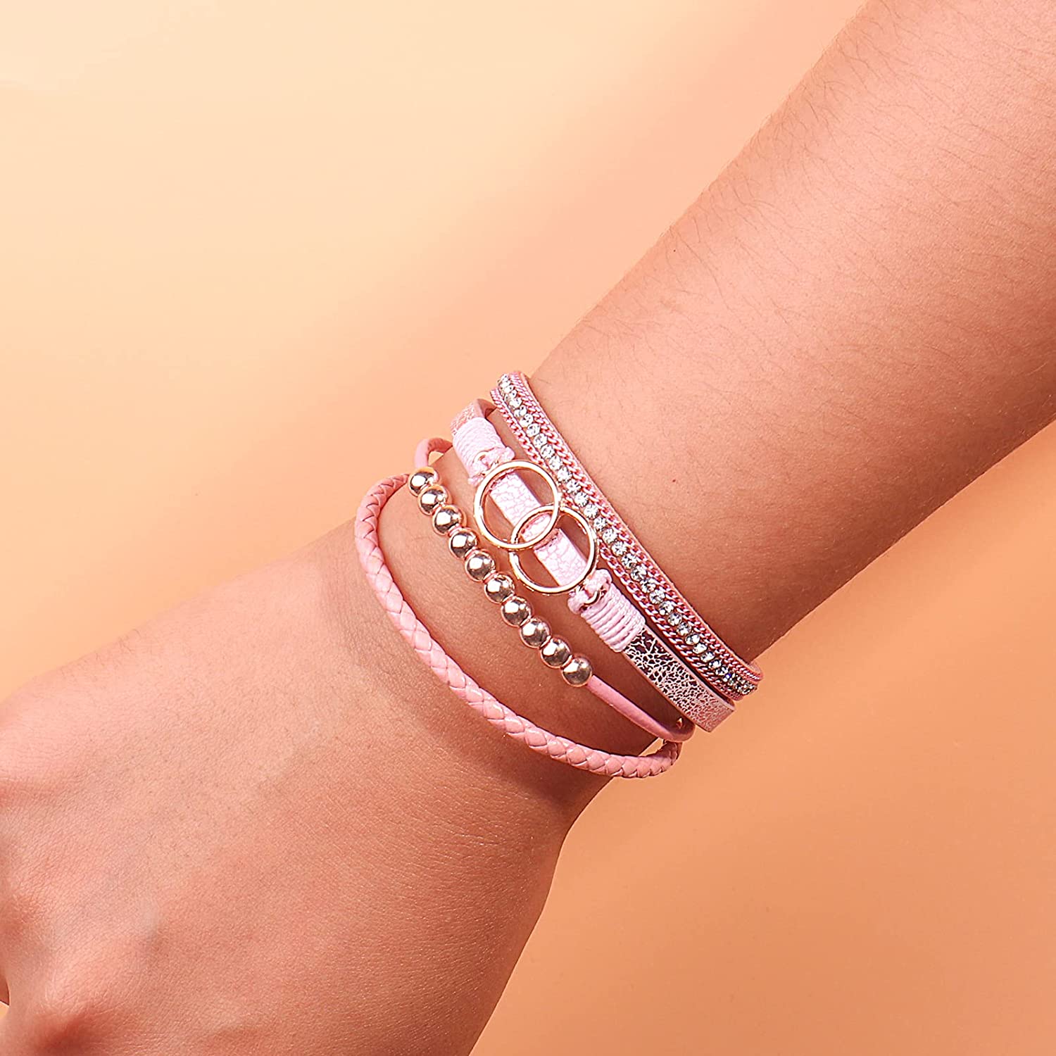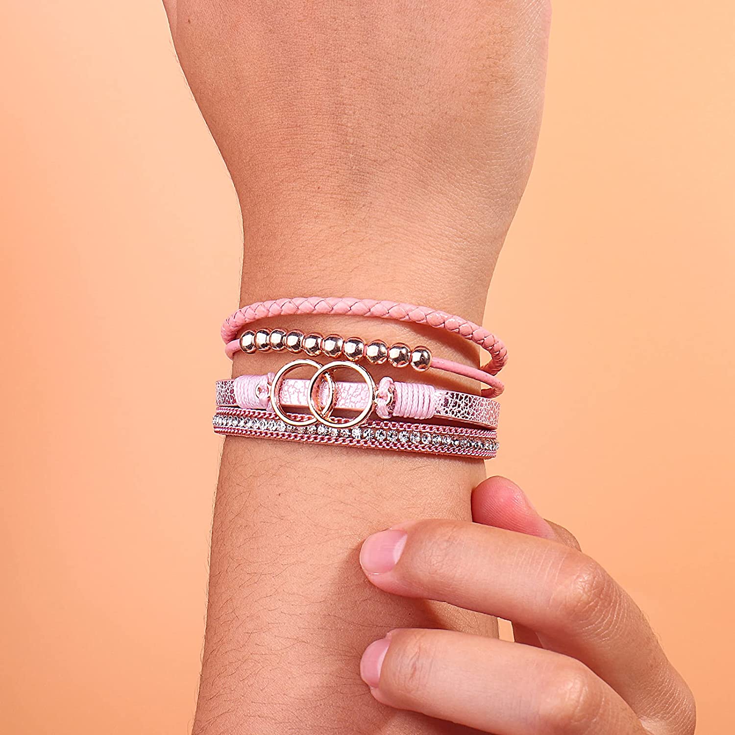 Layered Bracelets: The rose gold infinity circles, rose gold beads and shinny rhinestone are telling “The love between us is forever”.