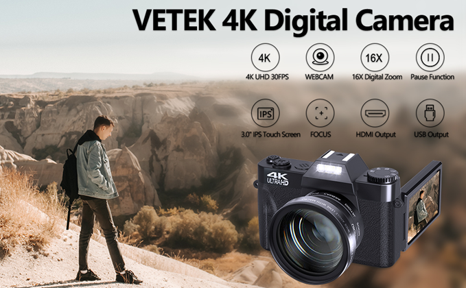 - ?【Camera for Photography and Video】Capture incredible photos and videos with this digital camera featuring 4K video and 48MP resolution. With 16X Digital Zoom, Video Pause, Loop Recording, and Silent Recording, it's perfect for vlogging and more. Also comes with a self-timer for easy photo capturing. The upgraded chip ensures high-definition and realistic images, making it the best gift for friends and family.