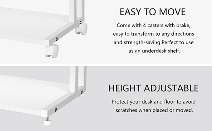 - 【SPACE SAVING】The 2 tier printer stand can be used as a desktop shelf or as an under desk organizer, and also provide an additional Storage Bag. Storage bag will help organize your working space at home or office more efficiently.