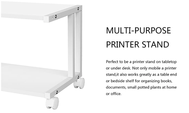 - 【MULTI-PURPOSE 2 TIER MOBILE SHELF】Dimensions: 17.3''/Lx11''/W’x11''/H-Ideal size for small 3D printers, fax machines, scanner and other office supplies. Our multifunctional desktop printer shelf can also be used as office organization, dorm essential, book shelf, storage shelf, and so on. It can be used in home, office, dorm, craft room as an ideal organizer and storage.