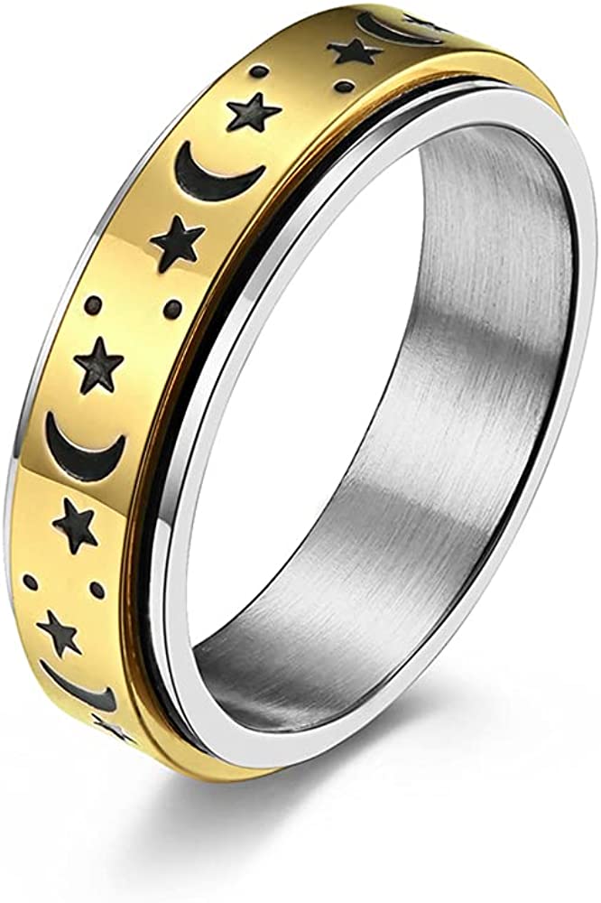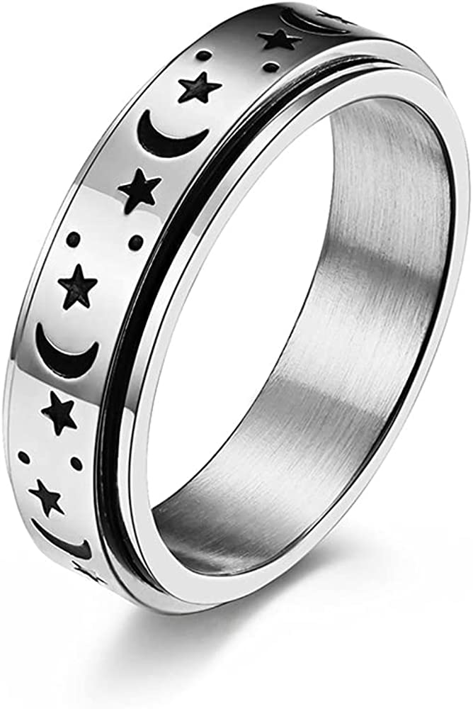 Black Moon Star Rotatable Titanium Stainless Steel Fidget Band Rings for Women Men Boys Teen Girls Dainty Anti Anxiety Stress Relief Spinner Rings Minimalist Statement Promise Couple Rings for Boyfrie