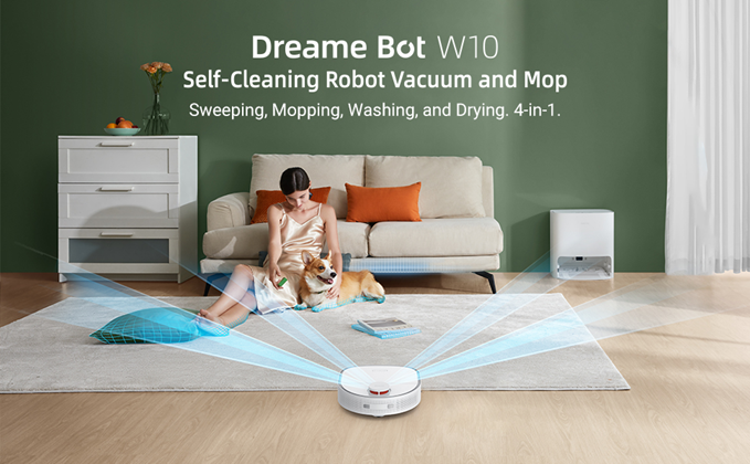 - 【Sweeping, Mopping, Washing, and Drying 4-in-1】 Intelligent return cleaning of the mop and hot air drying make your cleaning healthier and cleaner. the W10 robot vacuum is equipped with a 4L clean tank and a 4L sewage tank, no need to change the water frequently, free your hands.