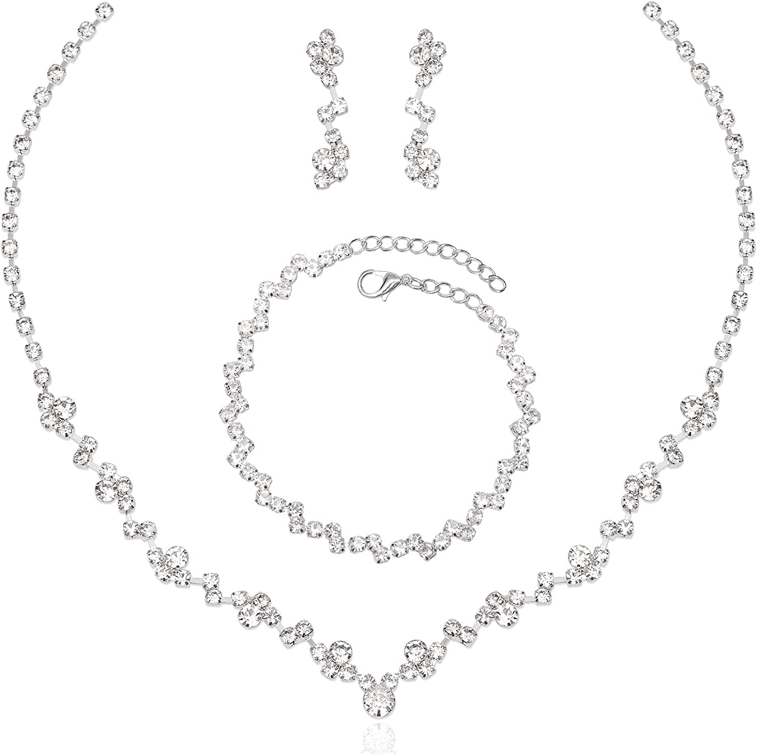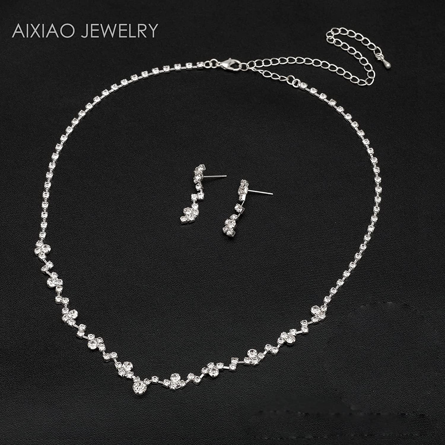 Aixiao Silver Necklace Earrings Bracelet Crystal Bridal Wedding Jewelry Sets for Brides Bridesmaid Prom Costume Accessories for Women