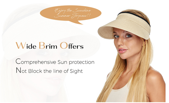 High-quality paper straw material: Womens visor is tightly woven to ensure that the straw hat is durable and comfortable, and the sun will not directly hit your face through the gaps;