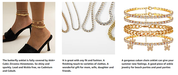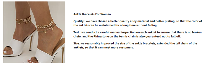 • Material: the anklet is made of shiny rhinestone and high quality alloy. The gold chain ankle bracelet is strong and durable. The anklet is plated with 18K gold and white gold, you can choose the color you like.