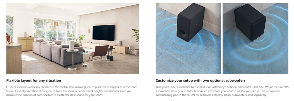 Sony HT-A9 7.1.4ch High Performance Home Theater Speaker System Multi-Dimensional Surround Sound Experience with 360 Spatial Sound Mapping, works with Alexa and Google Assistant
