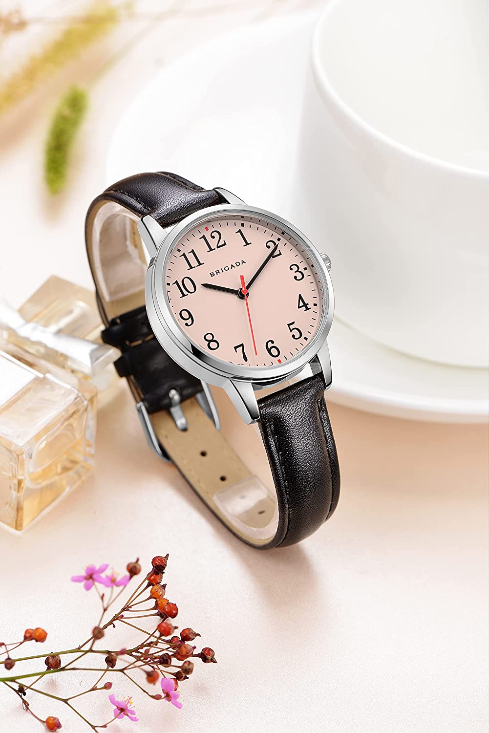 BRIGADA Women's Watch Elegant Watch for Women Leather Band Ladies Watch for Women Waterproof