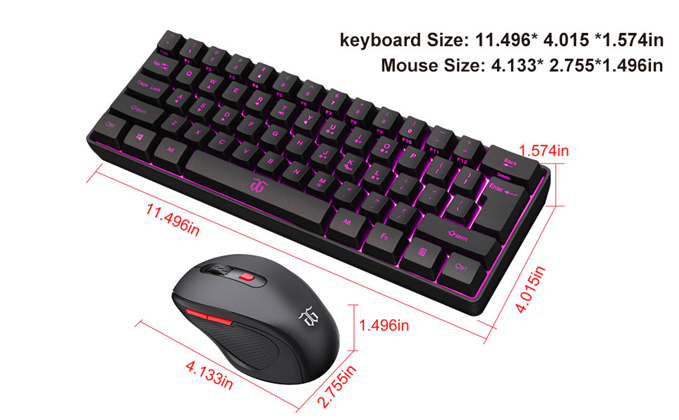 • 【Small Gaming keyboard and Mouse Combo】The scientific choice is a wireless compact 60% keyboard and a cute pocket-sized mouse, which strives to create a perfect combination of gaming and office. Slim and lightweight design makes it not occupy much space and provide convenience for travel.