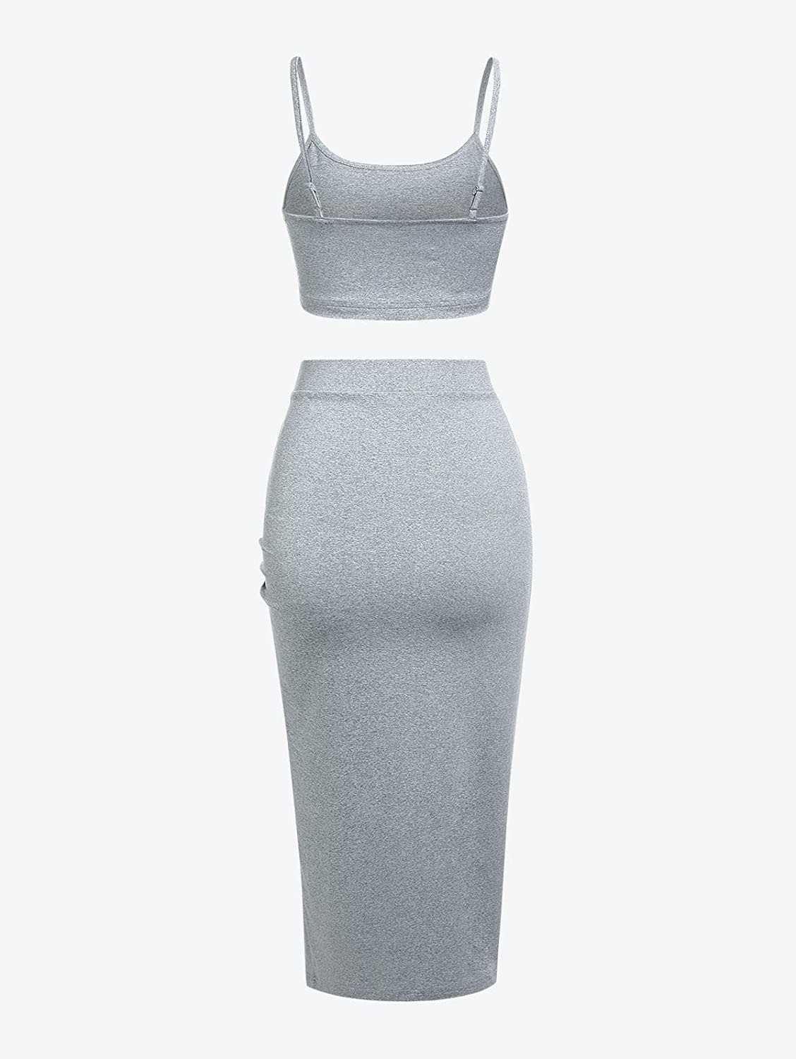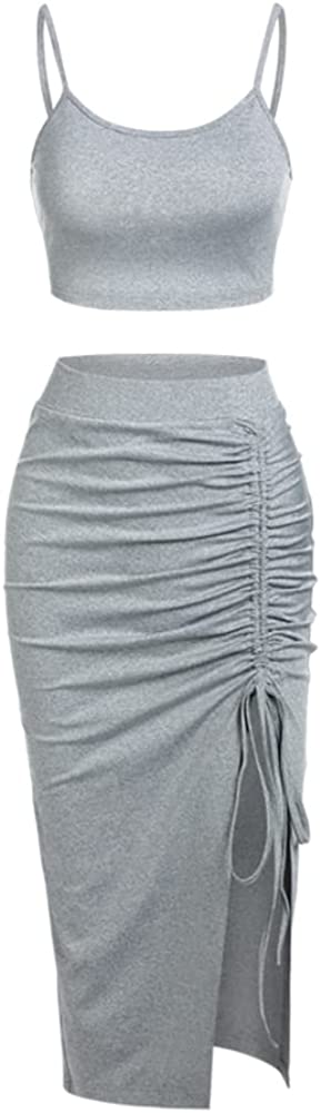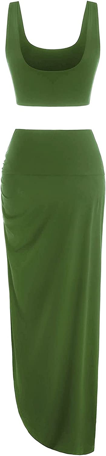 • ♥Style: Two-piece outfits feature asymmetrical slit skirt with tank top, elastic waist, sleeveless. Style this with some accessories and strappy heels to complete the look.