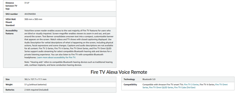 Compatible with Amazon Fire TV Smart TVs and other TVs 32-55 inches.