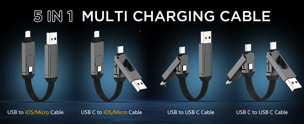 - ✅【5 in 1 Unique Design】This universal cable has five different types of cable inputs/outputs( USB A and USB C inputs&Type C,Micro USB,IP outputs) You can choose one of six different combinations to quickly charge any of your devices(USB A/C to Type C/Micro/Lighting)