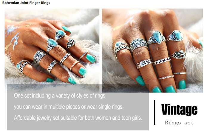 • ❤Material❤ These stacked rings use alloy materials, silver plated, high polished, it's comfortable to wear, don't worry about harm your fingers. With Bohemian style, vintage design, crystal, fashion carved, it is worth buying. They will make your fingers look more elongate, more beautiful. The rings of various designs can be randomly combined. It makes you very personal.