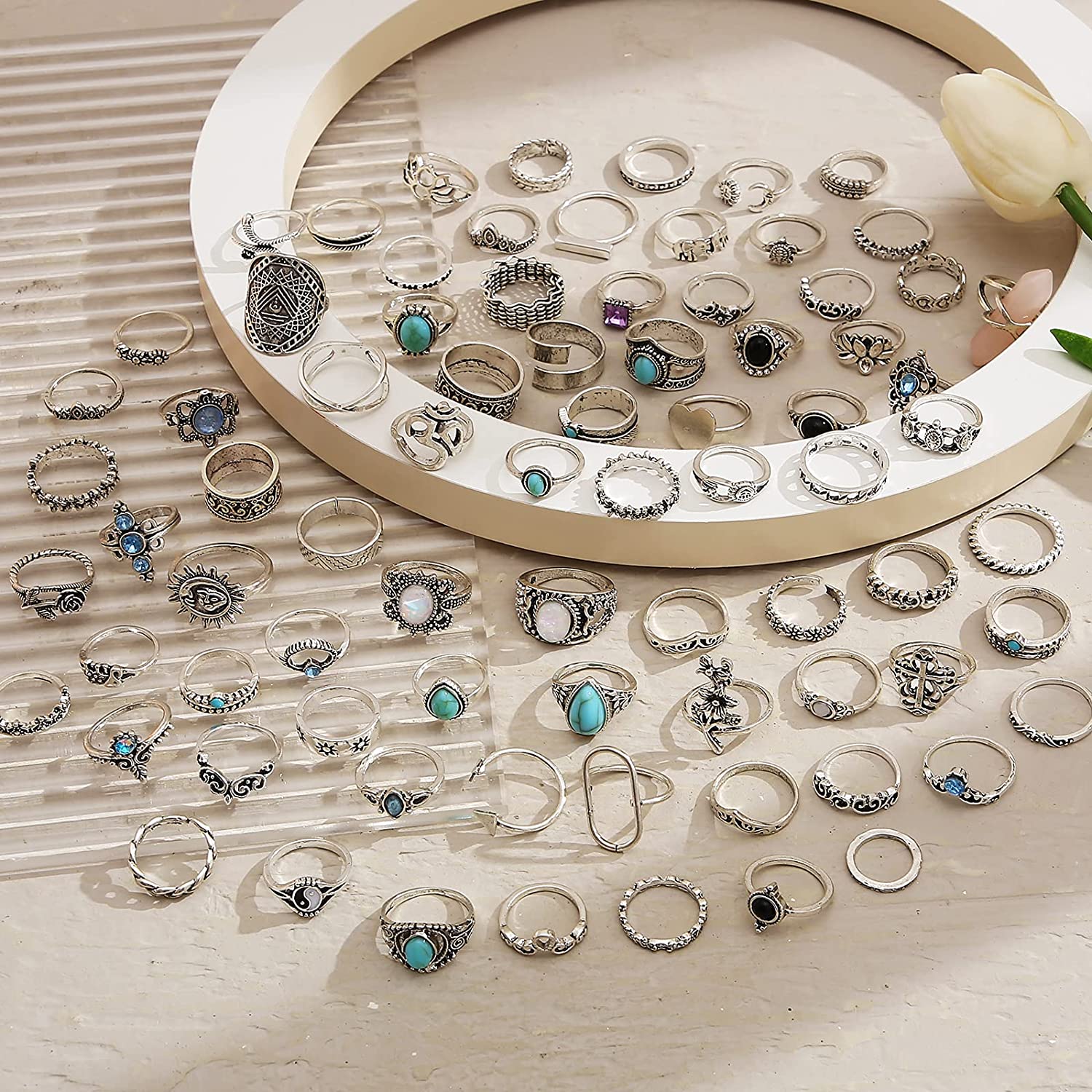 • ❤82 Pcs Ring Pack❤ You will get a set of 82 different designed rings, which contain turquoise stones, crystals, black stones, etc. You can choose different sizes of rings to wear on your different fingers. Various styles can match various clothing and occasions.