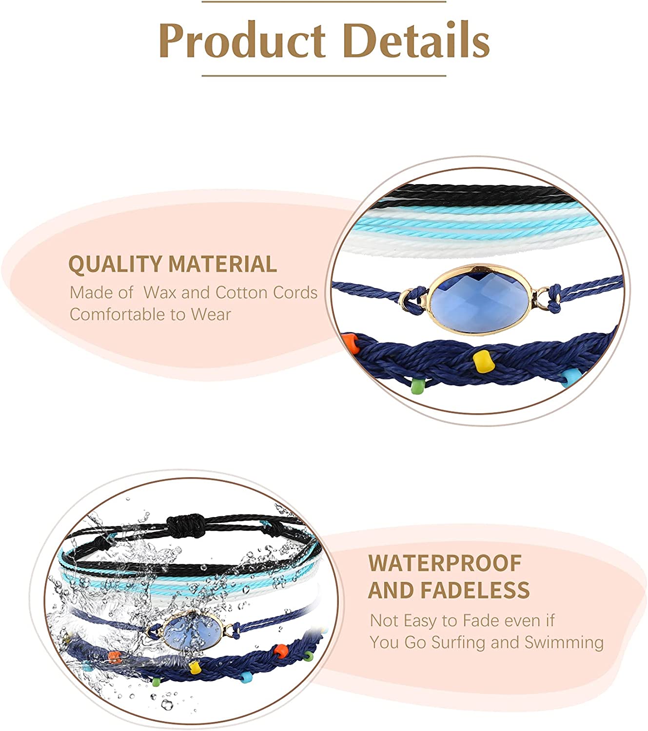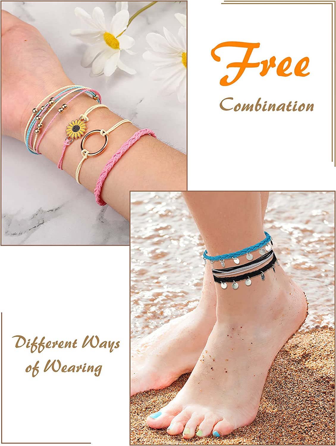 • Waterproof and fadeless: these boho style pull cord anklets are made of a combination of wax and cords, featuring good resistance of water, not easy to fade even if you go surfing and swimming wearing with them