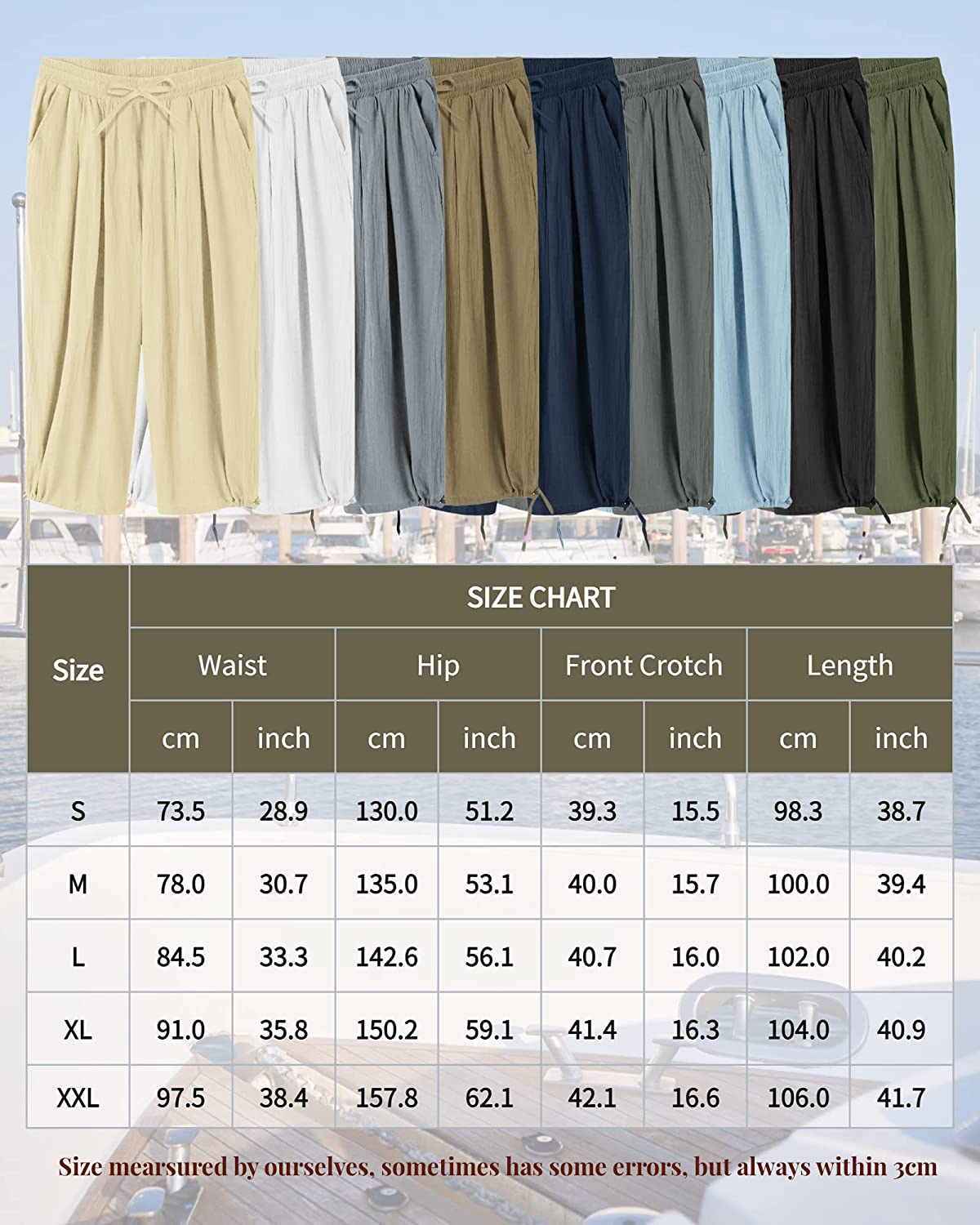 • 【HIGH QUALITY FABRIC】: The linen pants made from premium cotton fabric, lightweight, breathable and soft touch, do not shrink and fade, bring you comfortable wearing experience.