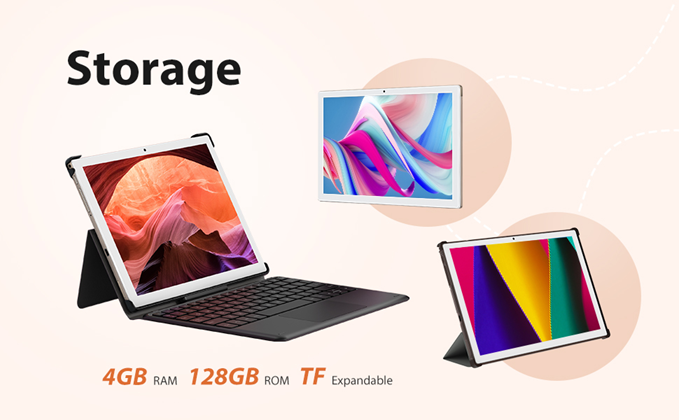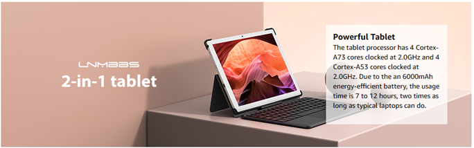 • 【AS a PC,AS a tablet】With the growing popularity of online offices,We designed a tablet with a trackpad keyboard.By mounting the 2 in 1 keybord, you can type on your tablet with greater ease anywhere and anytime.It can increase office productivity without problems. Many games can be played during entertainment.It's edge design measures 9mm, but still has a 6000mAh rechargeable battery working inside to provide 6-12 hours of working time or entertainment time and 20 days of standby time.
